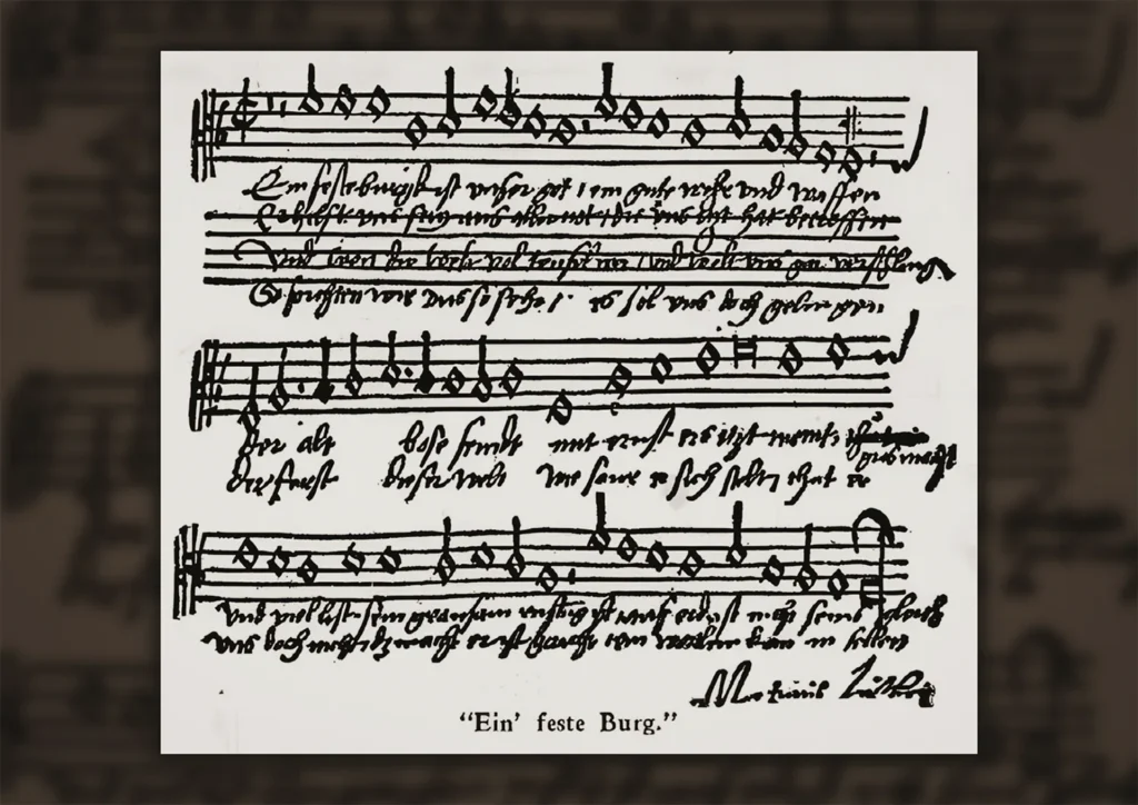 En 1527, Martín Lutero escribió su himno más amado, Castillo fuerte es nuestro Dios, ahora un elemento básico en los cultos del Día de la Reforma en todo el mundo. Es posiblemente uno de los diez mejores himnos en la historia de la Iglesia. Las primeras tres palabras, Ein feste Burg, aparecen en estatuas e iglesias en Alemania e incluso han llegado a lugares como la repisa de la chimenea en la antigua casa de Billy Graham en Carolina del Norte. El himno es una clase magistral tanto en himnodia como en teología.