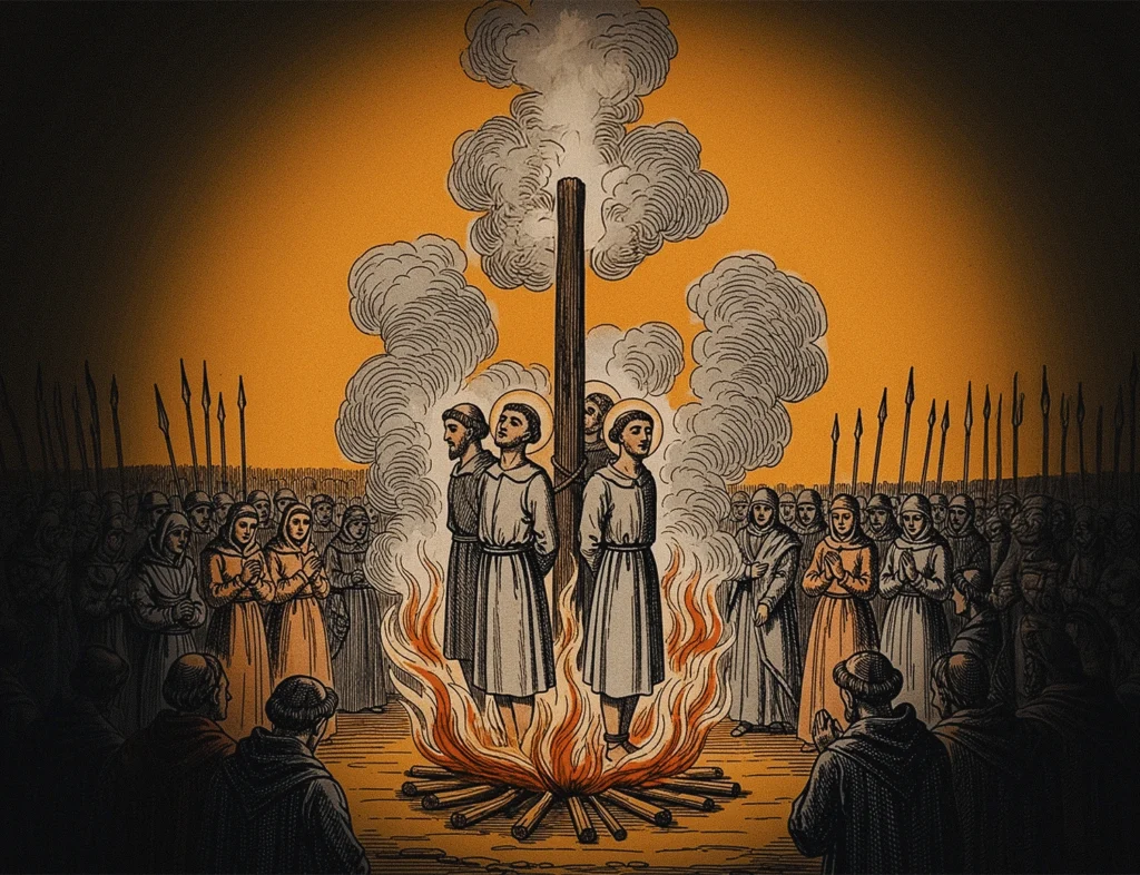 En el centro de la plaza, frente a una gran multitud, se encuentra un grupo de hombres y mujeres que saben que su muerte está cerca. La hoguera les espera y el crimen que los hizo “merecedores” de aquel destino es ser “herejes luteranos”. Pero antes del final, se les exige una última prueba pública, una oportunidad para retractarse. Deben recitar el Credo de Nicea, el símbolo de la fe cristiana. Con voz firme, comienzan a proclamarlo, palabra por palabra… hasta que llegan a la frase “creo en la Santa Iglesia”. En ese momento, sus jueces les ordenan añadir un pequeño detalle, una sola palabra: “romana”; “creo en la Santa Iglesia romana”.