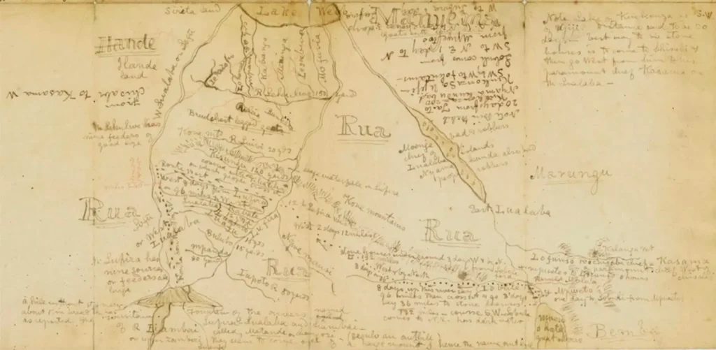 Mapa hecho por el propio Livingstone durante sus expediciones. / Imagen: Dominio público