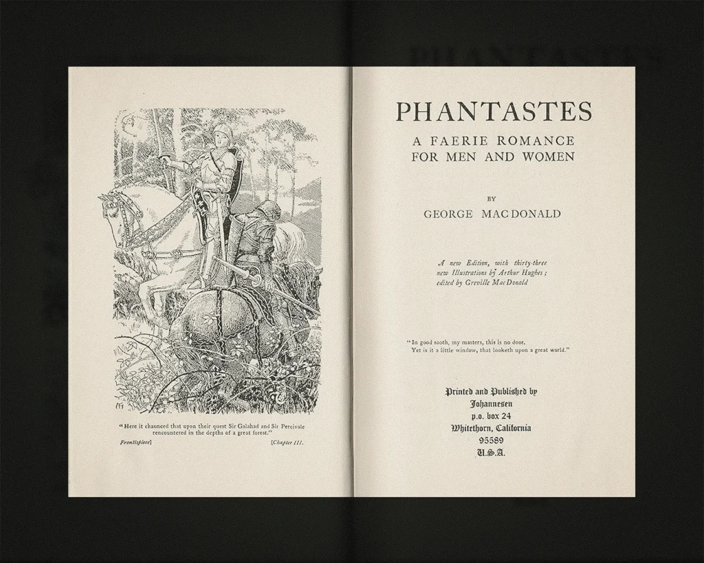 Sin embargo, en 1858, MacDonald publicó su primera novela fantástica, Phantastes: una especie de romance para hombres y mujeres (1858). La obra resultó ser una anomalía absoluta para su tiempo: no era una alegoría simplista ni un cuento de hadas moralizante. En su lugar, ofreció una narrativa mítica que exploraba las grietas de la condición espiritual humana. Combinando la herencia de los cuentos celtas de su infancia con una profunda introspección teológica, MacDonald demostró que la fantasía no era una vía de escape de la realidad, sino un espejo para comprenderla mejor.