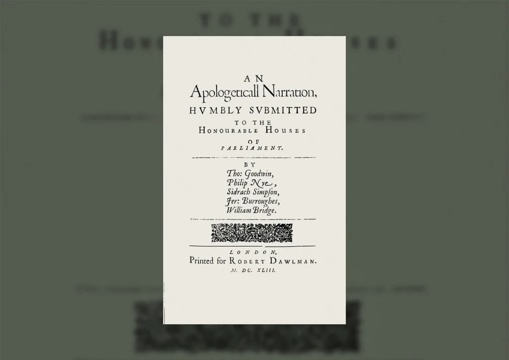 Esta postura quedó plasmada en 1644 en su obra Una narración apologética, donde defendían una eclesiología orgánica y bíblica. Para reforzar su posición, se apoyaron en las contribuciones de teólogos afines como Cotton, cuyas obras ayudaron a cimentar esta senda intermedia entre el sistema presbiteriano y el separatismo radical. Burroughs, fiel a su espíritu conciliador, buscó la reconciliación en el Comité de Acomodación. Sin embargo, al no lograrse un consenso que respetara la autonomía local, declaró con firmeza en 1646 que “prefería sufrir o emigrar en lugar de someterse a un gobierno eclesiástico presbiteriano coercitivo”.