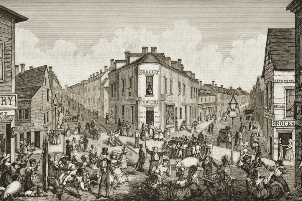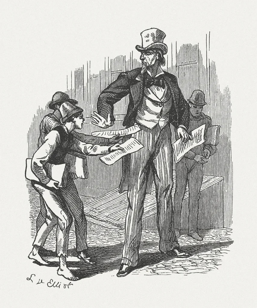 En esa época, la niñez estaba marcada por la pobreza extrema y el trabajo infantil no regulado que, hacia mediados del siglo XIX, terminó siendo una pieza fundamental de la fuerza laboral urbana. Miles de niños, muchos de ellos huérfanos o inmigrantes, vivían en las calles y desempeñaban oficios precarios durante largas jornadas para sobrevivir, pues no había regulación legal. Los vendedores de periódicos —conocidos como newsboys— competían ferozmente en las calles, mientras otros trabajaban en talleres, muelles o fábricas textiles. Se estima que, en 1852, entre 10.000 y 30.000 niños vivían sin hogar en Nueva York. Eran conocidos como “ratas callejeras” y dormían en cajas o cerca de los hornos de las panaderías para buscar calor. En general, las condiciones sanitarias eran precarias y las enfermedades —como el cólera— eran comunes.