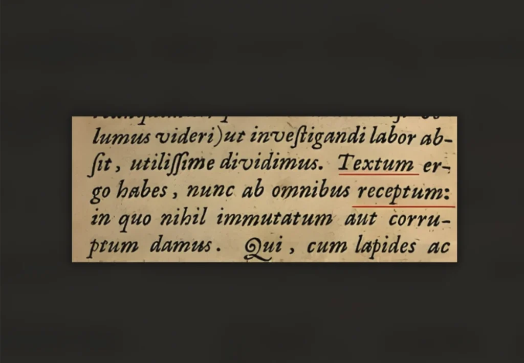 El texto se consolidó de tal manera que, en 1633, los Elzevir, una familia neerlandesa de libreros, editores e impresores, publicaron una nueva edición. En su prefacio, declararon con audacia: “Por lo tanto, tienes el texto, ahora recibido por todos”. De esa palabra latina, “receptum”, nació su famoso nombre: Textus Receptus.
